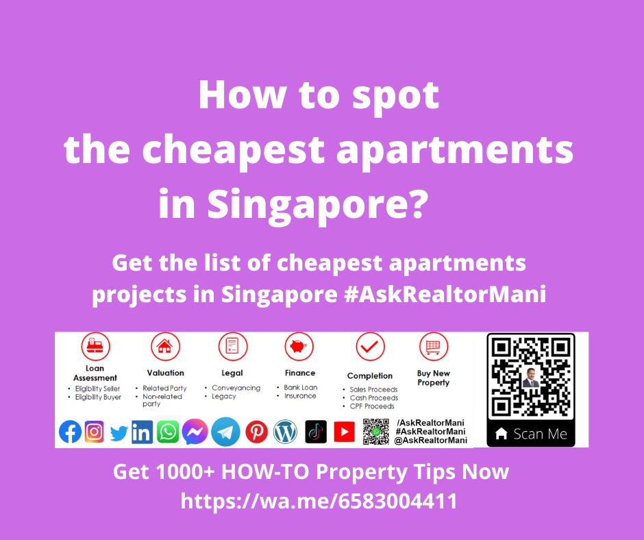 How to spot the cheapest apartments in Singapore? Get the list of cheapest apartments projects in Singapore. #AskRealtorMani