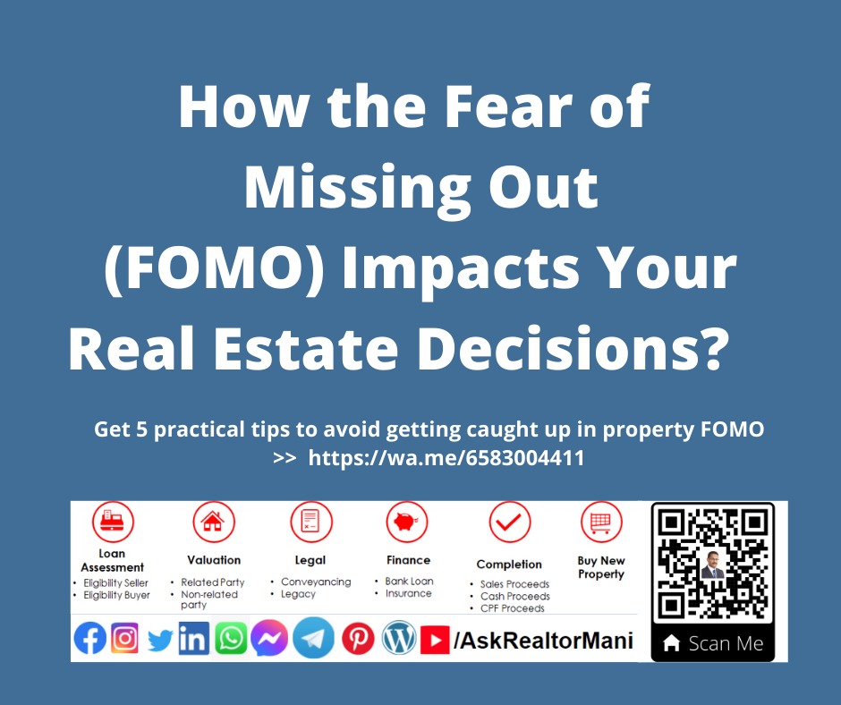 If you are thinking of buying and/or selling a property… Firstly I will do an assessment at no cost to you ✔ Eligibility and Affordability ✔ Risk of buy/sell/hold/invest ✔ Cost of property buy/sell/hold/invest Secondly, I will provide customized reports at no cost to you ✔ Indicative Property Valuation ✔ Comparable Market Analysis – CMA ✔ Rental yield & Capital gain Analysis ✔ Strategies for Entry/Holding/Exit before you buy or sell a property Thirdly, I will advise at no cost to you ✔ Explain applicable market trend, policy, procedure, ✔ Provide checklist, guides, and tips ✔ Cut loss, save money, and make a profit ✔ Real estate legal matters ✔ Real estate financial matters FastTrack, ✔ To save money, time, effort ✔ To reduce risk and avoid mistakes ✔ To make an informed decision Bonus, I will send an alert at no cost to you ✔ New Launch Condo ✔ Below Market Value Properties ✔ Fire-sale deals